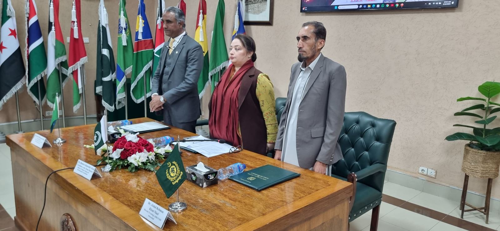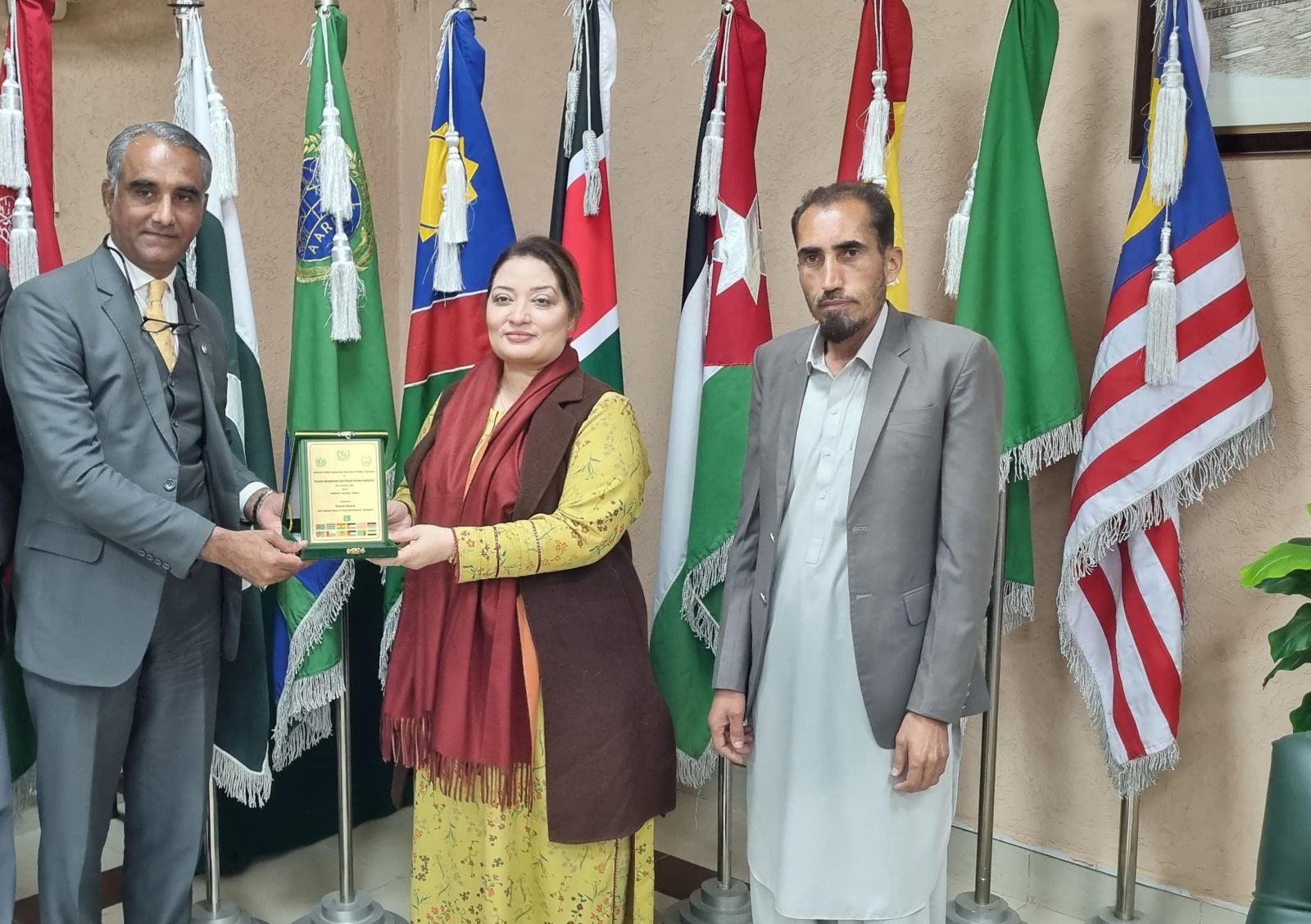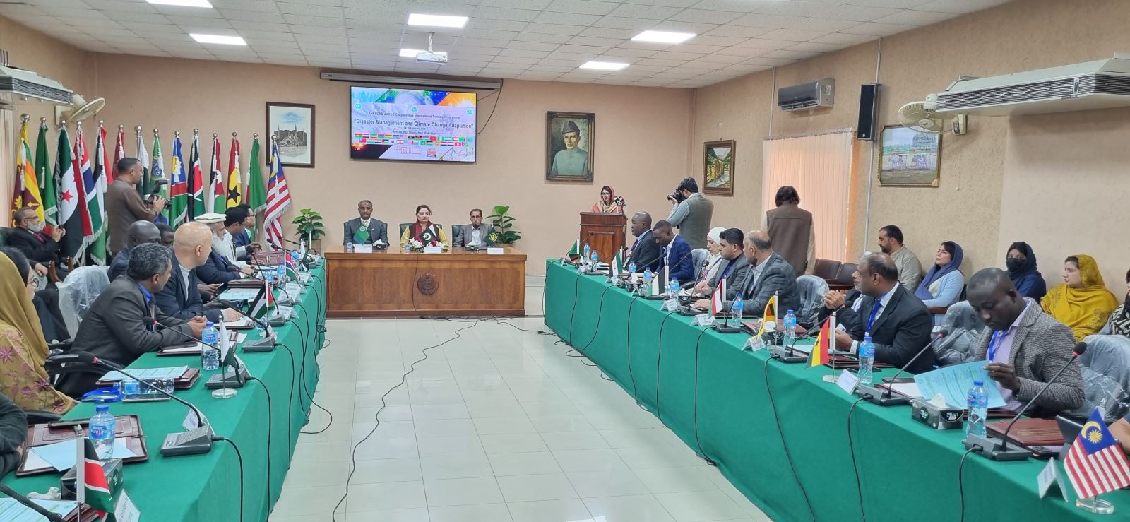 PRESS RELEASE for AHKNCRD-AARDO’s Collaborative International Training Programme on “Disaster Management and Climate Change Adaptation” – February 09-16, 2025 Akhtar Hameed Khan National Centre for Rural Development (AHKNCRD), Islamabad is an apex training/capacity building institute of the country and an Attached Department of Establishment Division, Government of Pakistan. AHKNCRD is also a link institution to work with African Asian Rural Development Organization (AARDO) on behalf of Government of Pakistan. The AARDO is an inter-governmental organization, which has thirty-two (32) member countries from Asia and Africa. NCRD has been conducting collaborative training programmes with AARDO at NCRD, Islamabad. Once again, this year, NCRD is conducting International Training Programme on “Disaster Management and Climate Change Adaptation” in collaboration with AARDO at NCRD during February 09-16, 2025. International participants from 13 AARDO member countries, including Pakistan, Bangladesh, Gambia, Ghana, Jordan, Kenya, Malaysia, Namibia, Oman, Palestine, Sri Lanka, Syria and Zambia, are attending this training programme. The training programme was inaugurated on February 09, 2025. The inaugural ceremony was chaired by worth chief guest, Ms. Romina Khurshid Alam, Coordinator to the Prime Minister, Ministry of Climate Change and Environmental Coordination, Islamabad. In addition, H.E. Lieutenant General Peter Mbogo Njiru, High Commissioner of Kenya; H.E. Dr. Maen KHREASAT, Ambassador of the Hashemite Kingdom of Jordan to Pakistan; H.E. Dr. Zuhair Zaid, Ambassador of the State of Palestine to Pakistan; and H.E. Dr. Ramez Alraee, Ambassador of the Syrian Arab Republic in Pakistan also joined the inaugural session. The ceremony was also graced by the presence of eminent dignitaries including Air Commodore (Retd.) Tanveer Paracha, Executive Director, National Institute of Disaster Management (NIDM); Mr. Waseem Ahmed, Manager (Training), NIDM; Ms. Sana Noor, Deputy Project Coordinator, NIDM; Dr. Zafar Qadir, Former Director General NCRD and Former Chairman National Disaster Management Authority (NDMA); Dr. Shaabbir Hussain Former Programme Officer, Centre on Integrated Rural Development for Asia and the Pacific (CIRDAP) and Prof. Dr. Muhammad Irfan Khan, Former Dean, International Islamic University Islamabad (IIUI). In his welcome address, Director General NCRD, Mr. Israr Mohammad Khan, expressed great honor at the opening of the AHKNCRD-CIDRAP Collaborative International Training Programme on “Disaster Management and Climate Change Adaptation.” He welcomed the delegates from AARDO member countries, delegates of the diplomatic corps and other dignitaries and commended the efforts of AARDO officials, especially Dr. Manoj Nardeosingh, Secretary General AARDO, for organizing the event in Pakistan. He also thanked Ms. Romina for joining the inaugural session. DG NCRD highlighted how AARDO member countries, including Pakistan, are increasingly vulnerable to climate change impacts, underscoring the urgent need for robust disaster management strategies and collaborative adaptation measures to build resilience. He also emphasized the importance of equipping stakeholders with knowledge and tools to effectively address the intertwined challenges of disaster management and climate change adaptation. He expressed his views that the collaboration promises valuable exchanges of experiences and best practices from across the AARDO countries. Mr. Israr expressed a strong presumption that the Training Workshop, complemented by in-house sessions and field visits, would provide profound insights to the participants and experts from the member countries. He expressed gratitude to AARDO for its support and extended appreciation to the participants from member countries, hoping that they embark on the journey to deepen their understanding of disaster management and climate change adaptation. During her address, Ms. Romina Khurshid Alam, thanked the delegates for joining the training programme and emphasized the importance of regional collaboration in addressing the dual challenges of disaster management and climate change adaptation. She reiterated importance of supporting member countries through knowledge sharing, capacity building, and fostering innovative solutions to promote sustainable development. Furthermore, she commended the efforts of NCRD for its contribution for the cause of rural development and poverty alleviation in Pakistan and other AARDO member countries through collaboration with AARDO. Ms. Romina hoped that the training program would equip participants with the knowledge and skills needed to implement effective disaster management and climate adaptation strategies in their respective countries. After the addresses, an introductory session of the participants took place, followed by a group photo and a tea break. Figure 1:Group Photo of Chief Guest, Members of Diplomatic Core, Participants,NCRD Officers and Other Dignitaries Figure 2 Coord. To the PM(Centre), DG NCRD (to her right) and Director (Trg.) NCRD (to her left) Figure 3 Glimpse from the proceedings of Inaugural Ceremony Figure 4 Director General NCRD presenting shield to the hon’ble Chief Guest of the ceremony.jpeg)